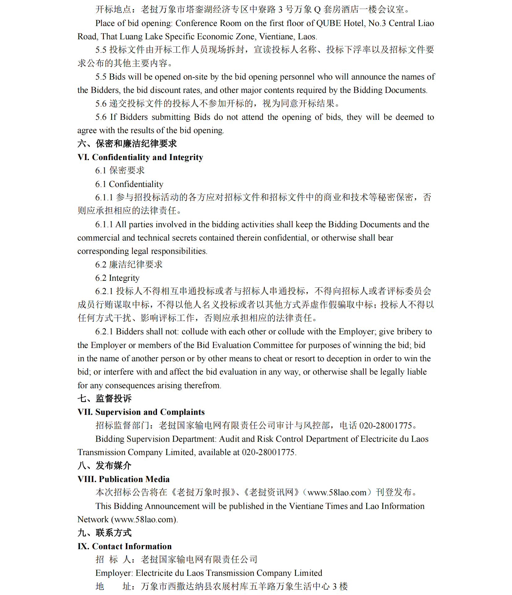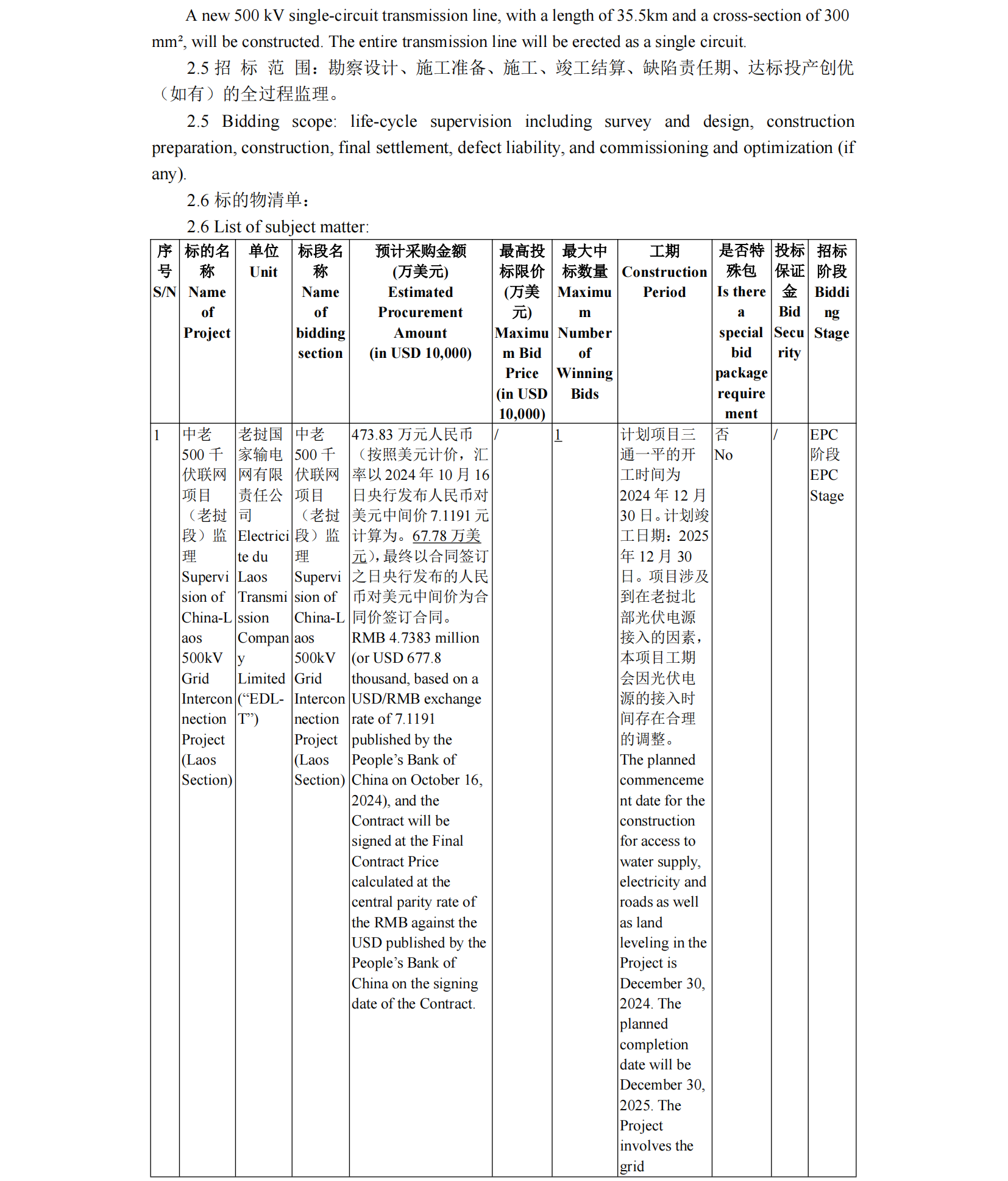 (万象)(招标)中老500千伏联网项目(老挝段)监理招标公告