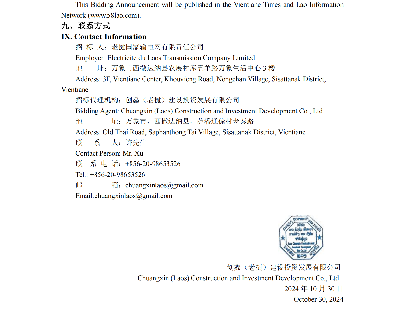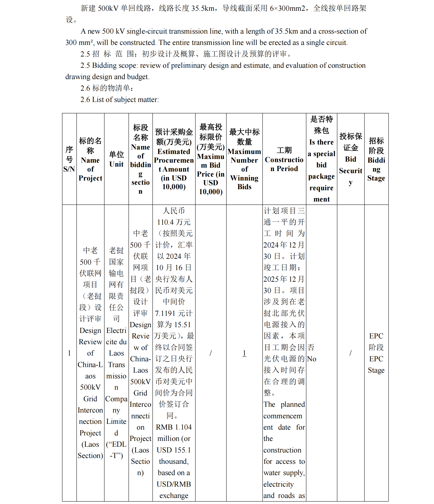 (万象)(招标)中老500千伏联网项目(老挝段)设计评审招标公告